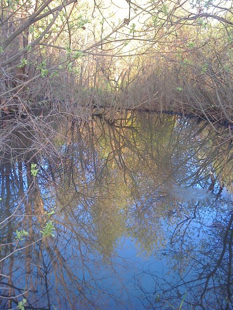 На фото бобровая плотина на ручейке, выбегающем из родника.