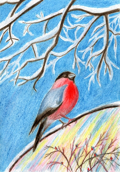 На голых ветках снегири