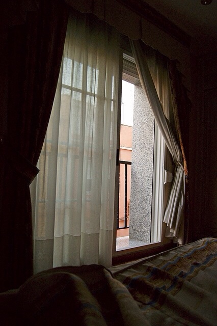 В окно уставился светильник,