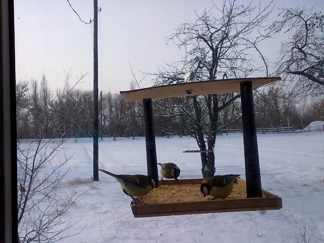 Тот пищу синичкам несёт.