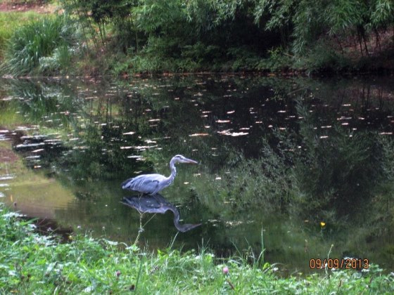 Цапля присела у края пруда,