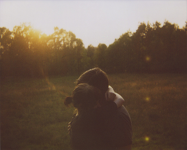 Он,вспоминая моменты,улыбаясь,обнимает ее,