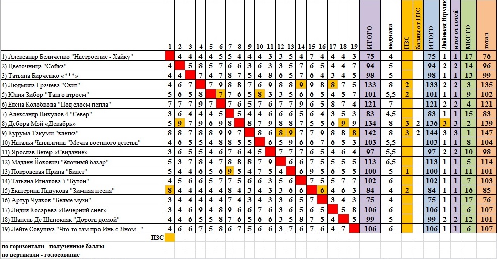 Прошу учитывать то, что система подсчёта по медиане НЕ ОЦЕНИВАЕТ стихи, а только определяет наиболее показательную оценку, полученную конкурсантом.