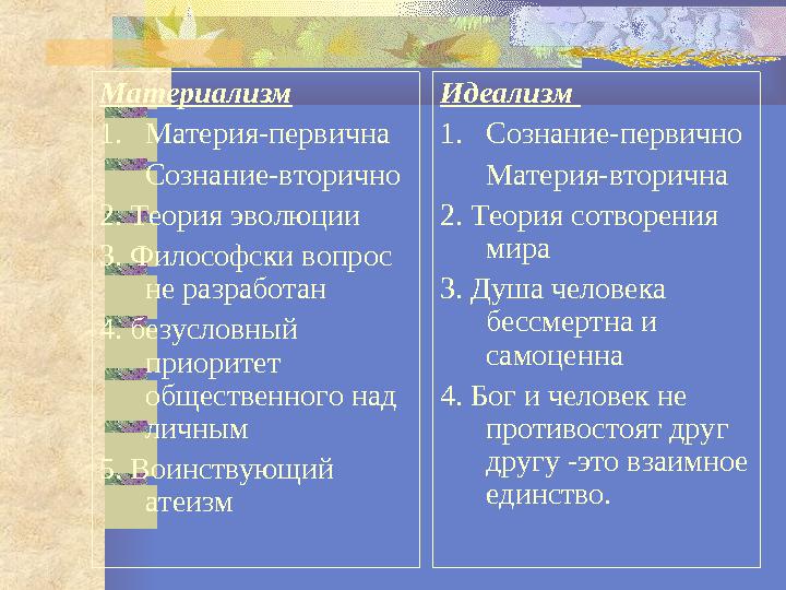 Что вся МАТЕРИЯ - первична, а ИДЕЯ, вот, вторична.