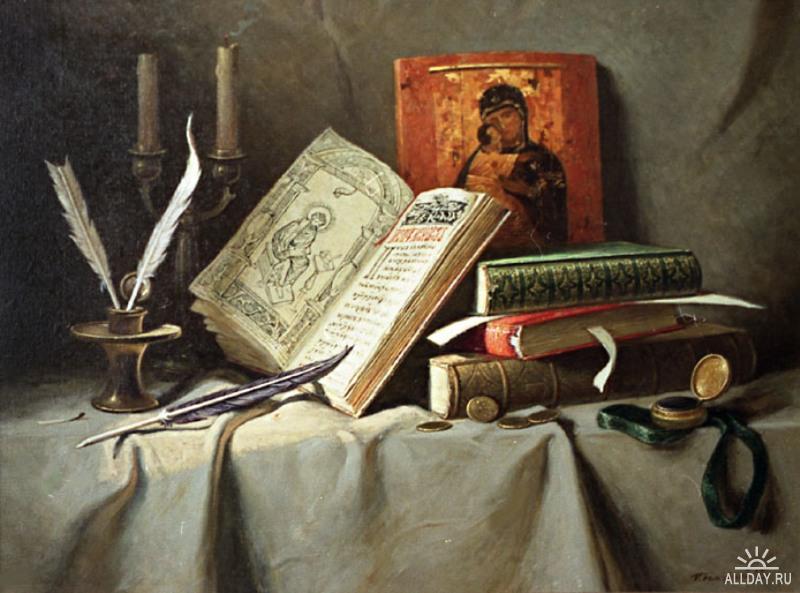 Три книги мне к переписи предоставлено. Из Ветхого Завету , где про Адама с Евою. Из житий святых про то, как схимник -печерник с бесом силушкой тягалси и Евангелие от Матфея.