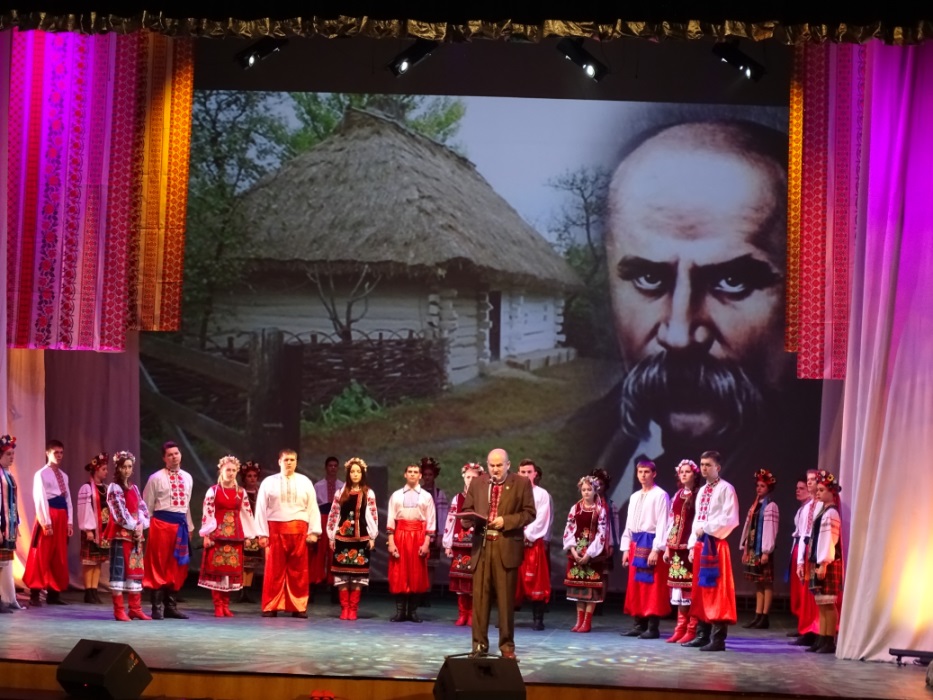 А в зале из глубины сцены с огромного портрета смотрел виновник торжества – великий украинский и русский поэт, Тарас Григорьевич Шевченко. Смотрел на нас, своих потомков, мудро, с добром, по-отечески.