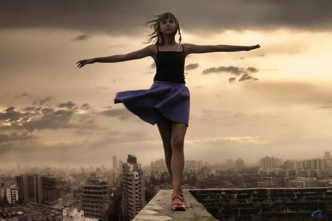 шла по парапету,