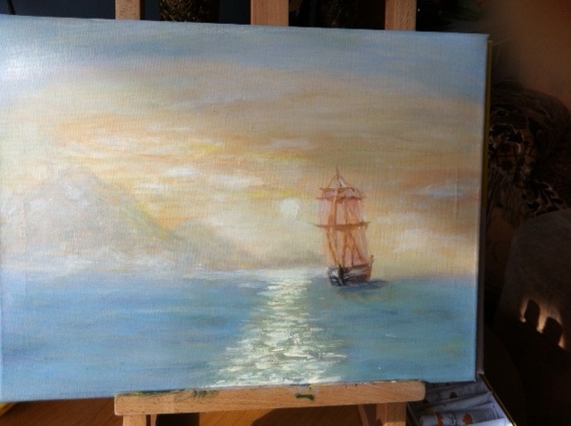 Нарисовала гавань и восход над морем,