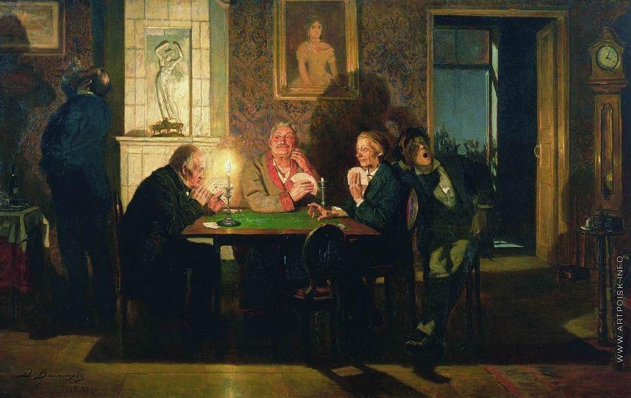 Друзья азартно в преферанс.