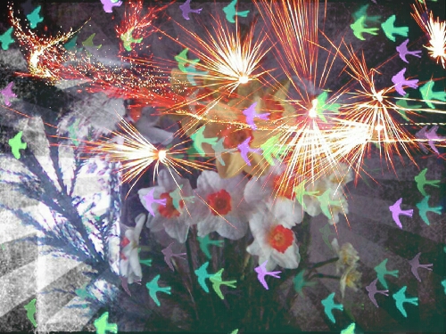 Букет нарцисс и фотоколлаж автора.