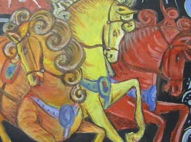 << Иллюстрация: фотография фрагмента работы автора "Тройка"(акварель, гуашь)2014