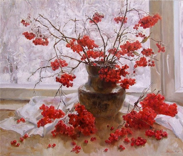 Рябина, словно - алая заря,