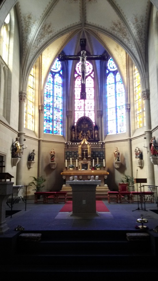 Святой алтарь украшен был цветами;