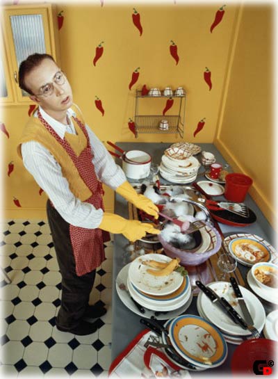 Мужик посуду вымыл за собой -