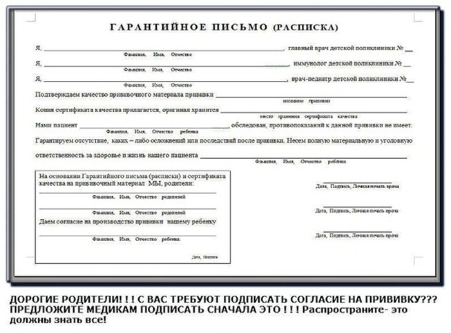 С вас требуют согласие на прививку??? Тогда сначала предложите медикам подписать ЭТО!!!