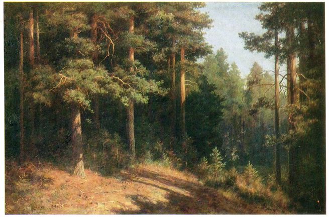 Сквозь сосны тянутся к зеленому ковру,