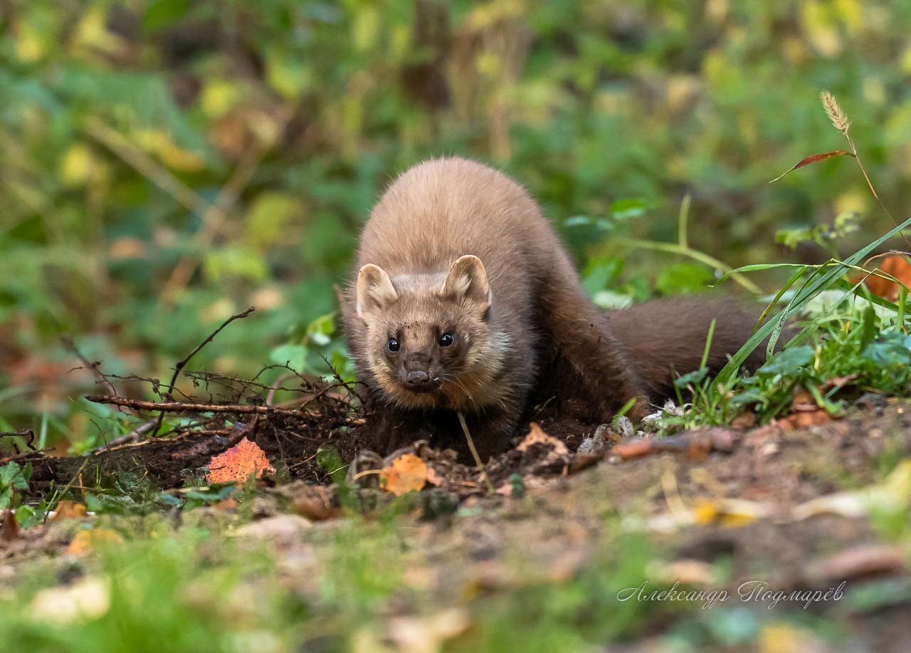 Заяц хвалит мох,кусточки,