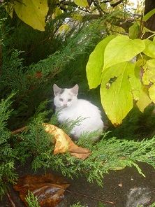 белым котенком в листве