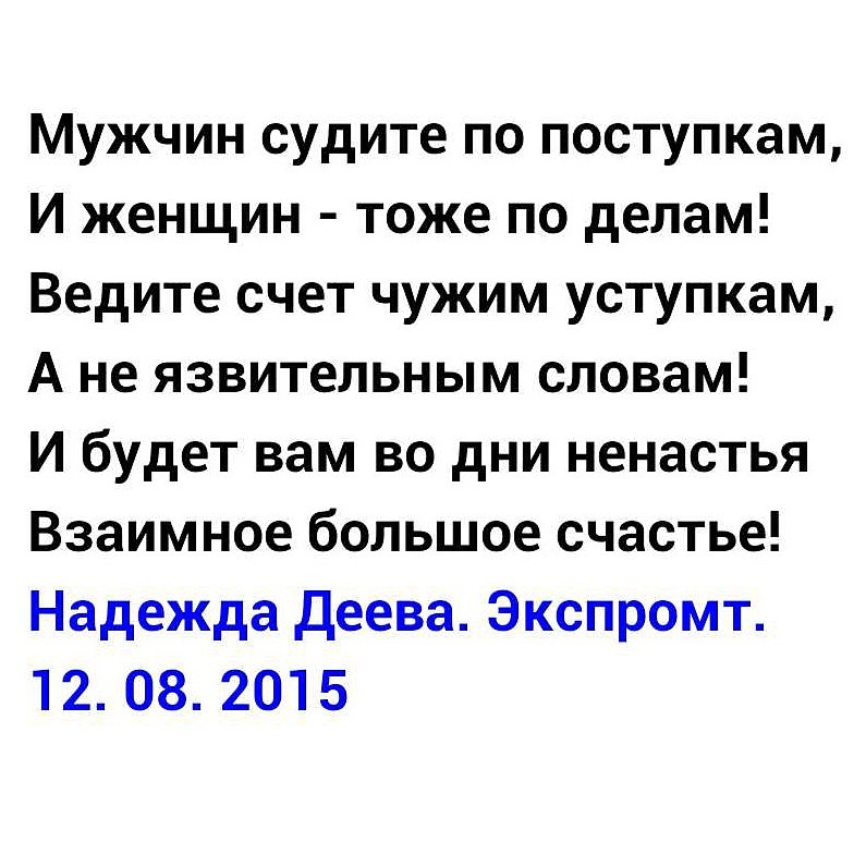 Мужчин судите по поступкам...