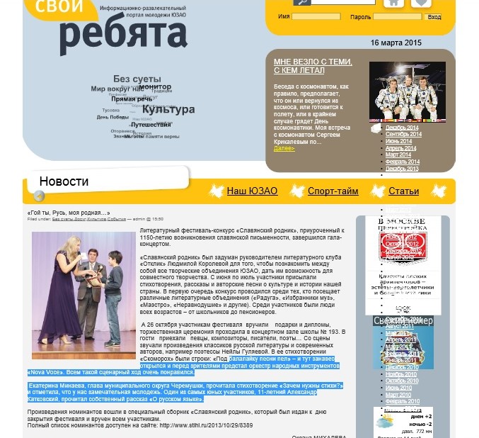 Отклик в СМИ Славянский родник 2013