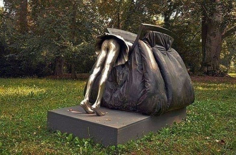 Иллюстрация: Эту замечательную работу в виде скульптуры женской сумочке представила Испания в 2013 году на седьмом биеннале парковой скульптуры Parco del Castello Reale.