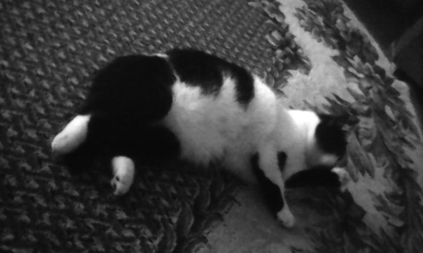 Кот потолстевший лег спать на ковре,