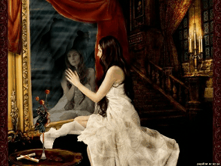 У зеркала ночью заженные свечи,