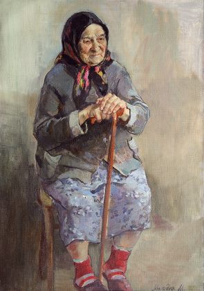 Наверно ей уже восьмой десяток