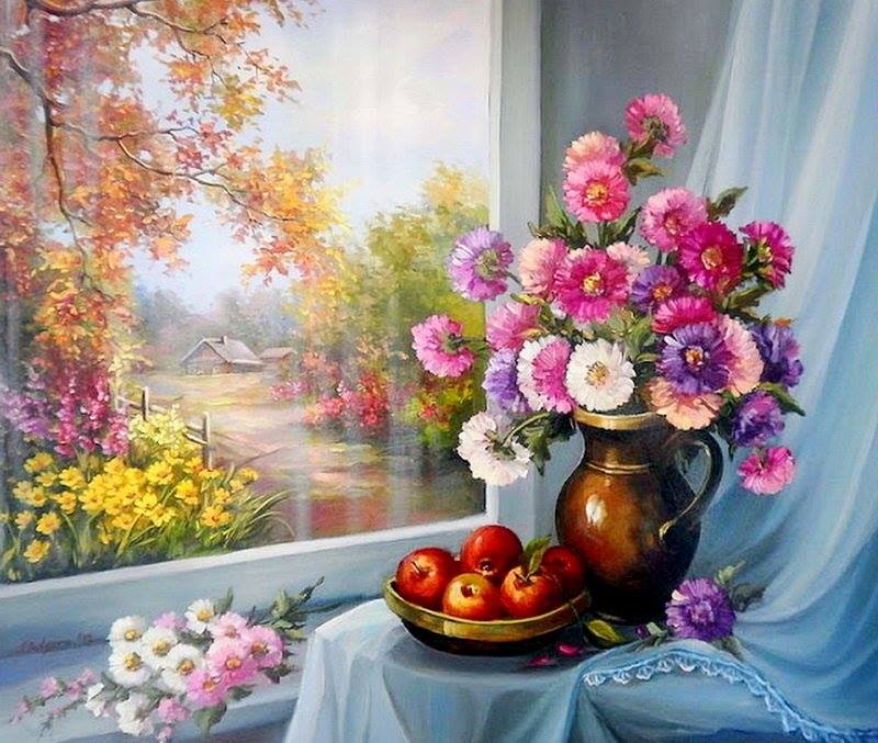 нарисовала она также и цветы.