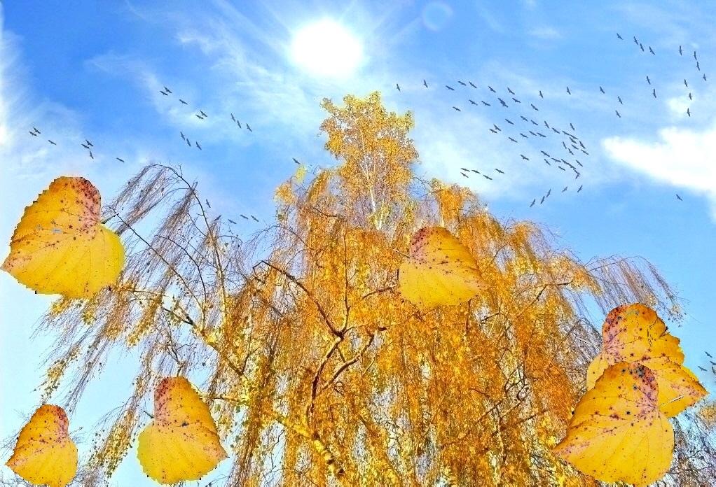летает стайка ярких листьев,