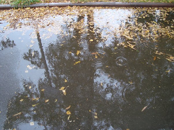 Листва золотая купается в лужах