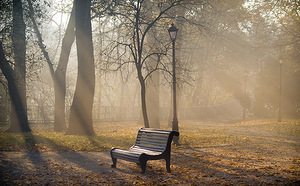 Вот грустит скамейка в старом парке,