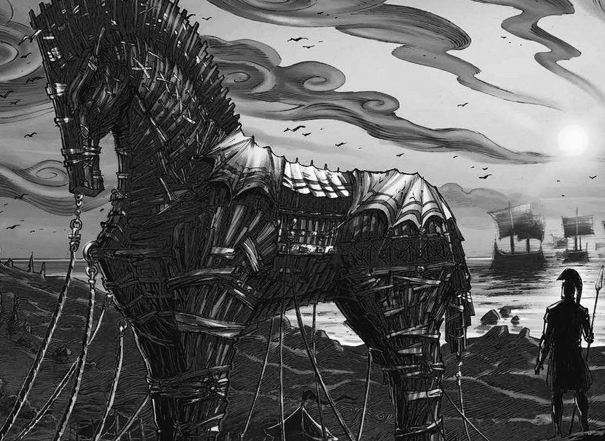 И тут и там жизнь ставит памятники конной трои,