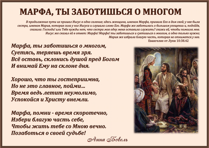 Марфа, ты заботишься о многом,
