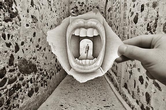 Прохожий зубоскалится