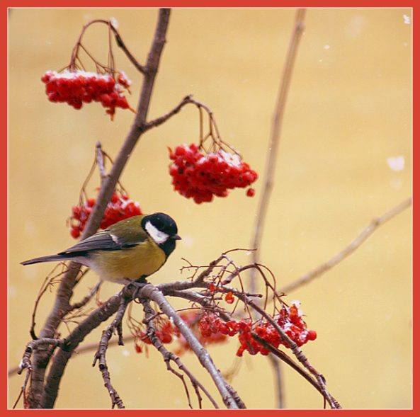 Задорная птичка синичка стучит капель бередя.