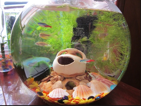 Рыбки, торт, аквариум.