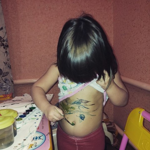 Потом размалевала всю себя!