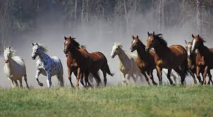 В луг галопом скачут кони,