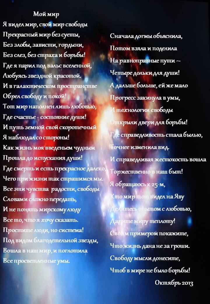 Я видел мир, свой мир свободы...