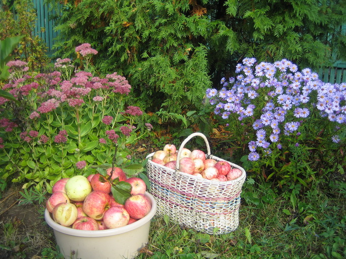 осыпают пруд в моём саду.