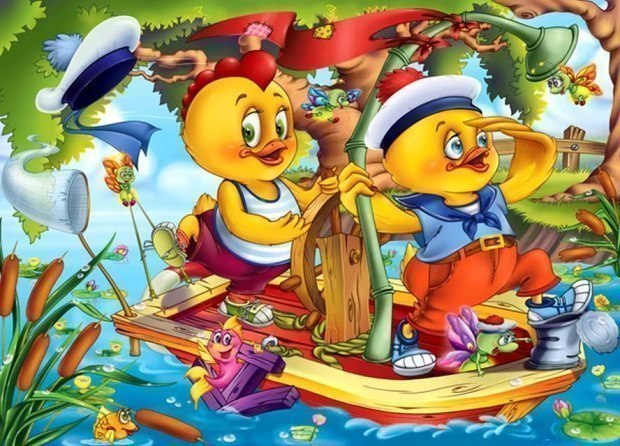 Но вдруг приплыл гусёнок Крям