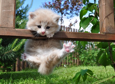 Рядом мяучит котёнок.