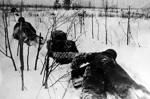 Вышли за деревню, дошли до дороги, увидели, что вдоль нее ползут люди в белом камуфляже, замаскированные ветками деревьев. Хотели пойти на попятную, но по другой стороне дороги ехала какая-то машина – мы не знали, чья она и кто в ней.