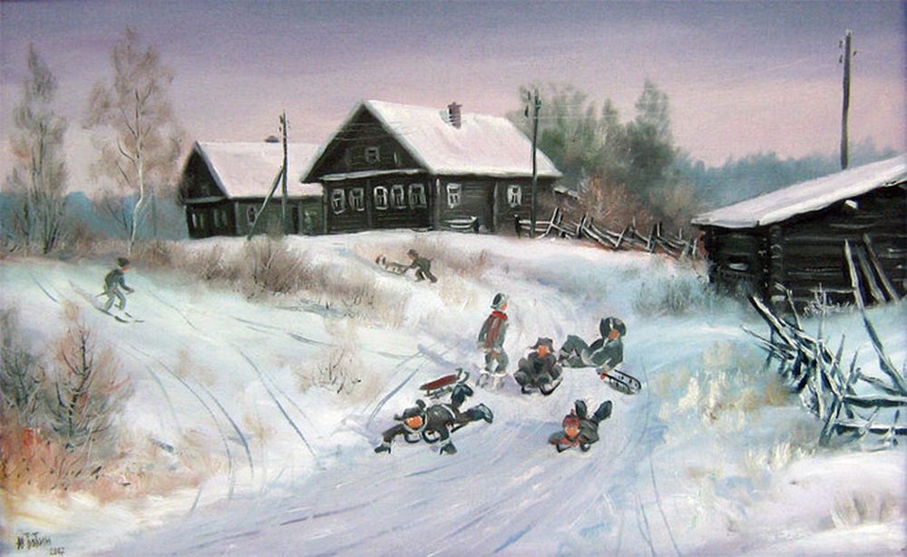 Хкдожник Бобин Юрий. Картина "Катание с горы".
