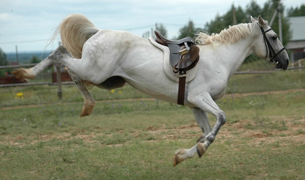 Что, того и гляди, с холки сбросит,
