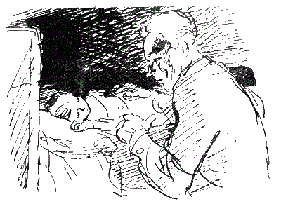 Склонился папа над кроваткой сына.