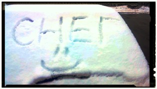 Краской белой,белым мелом