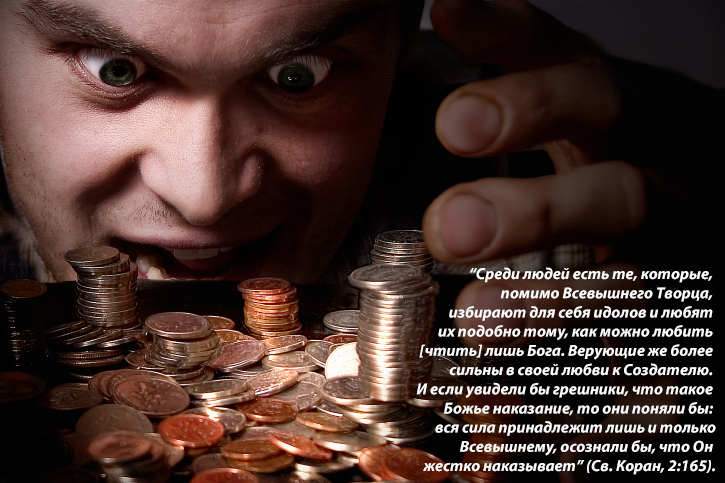 “Среди людей есть те, которые, помимо Всевышнего Творца, избирают для себя идолов (что-то приравниваемое к Богу, возносимое на уровень Божественной святости) и любят их [проявляют покорность перед ними, возвеличивают их] подобно тому, как можно любить [чтить] лишь Бога. Верующие же более сильны в своей любви к Создателю. И если увидели бы грешники [язычники, узнали бы уже в мирской обители о том], что такое Божье наказание, то они поняли бы: вся сила принадлежит лишь и только Всевышнему, осознали бы, что Он жестко наказывает” (Св. Коран, 2:165).