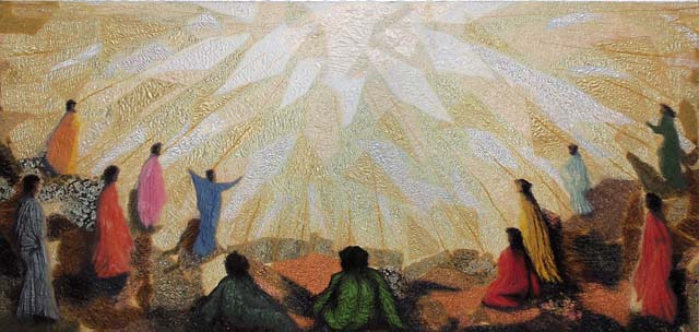 "Ра-М-Ха(ос),озарился Великим Светом Радости, от Него полился Великий поток Инглии, Первозданного Живого Света, то есть дыхание Его несказанное, хлынул Свет несказанный и зазвучал в Нечто Великом"